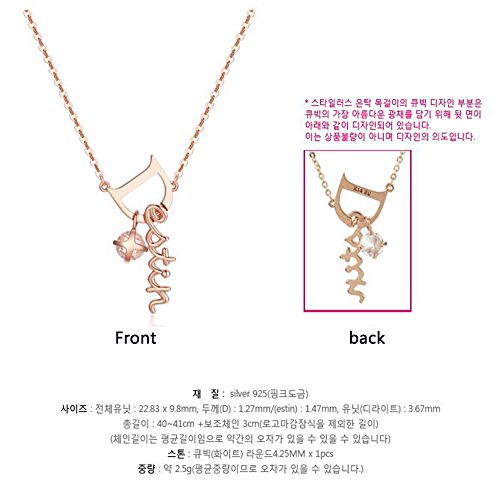 Feature : Material: silver 925 (pink plating) / Size: Whole unit 22.83×9.8mm, thickness(D):1.27mm/(estin):1.47mm /유닛(디라이트):3.67mm,full length:43cm / Product Component: Warranty card, Box, necklace / Stone : Cubic(white) 4.25MM / made in Korea / ***Gift: jewelry case(Gold or black)/ Free gift wrapping service