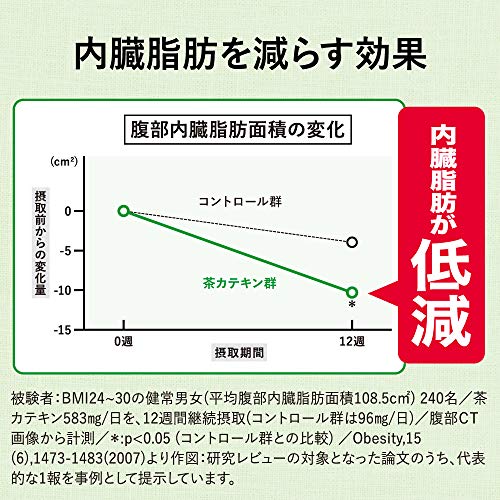 「内臓脂肪を減らす」茶カテキンを配合した粉末飲料。内臓脂肪が気になる方に適しています。機能性表示食品。花王厳選の茶カテキンを配合。
