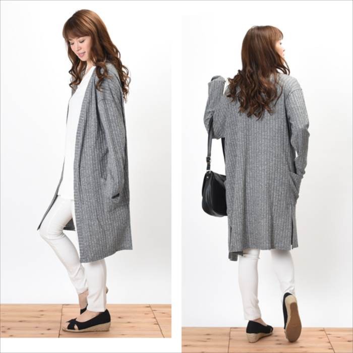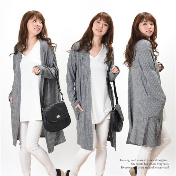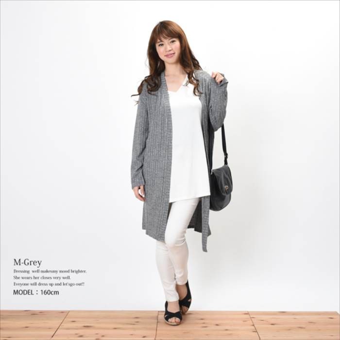 ●商品の特徴・立体感のある編み目が特徴で、伸縮性たっぷりえ着心地が軽いワイドリブ素材のカーディガンです。・無地でシンプルかつ、立体感のある生地でオシャレな雰囲気がありコーディネートに取り入れやすく着回ししやすいデザインです♪・シンプルなデザインのカーディガンなので、幅広い着回しができてワードローブにお使いいただけます。・両サイドの裾部分にはスリットが入っているのでシンプルかつオシャレな雰囲気があり人気のデザインです。●サイズ展開 【フリー】 着丈90cm バスト86~94cm※平均での採寸となりますので、多少の誤差が生じる場合がございます。ご了承くださいませ。●カラー展開 グレー ブラック ネイビー ※画像をご参照下さい。●商品詳細 【素材】:レーヨン52% ポリエステル45% ポリウレタン3% 【厚み】:普通 【裏地】:なし 【シルエット】:ゆったり 【伸縮性】:あり 【付属品】:なし (コーディネート使用の衣類、アクセサリー等は付属しません)20代 30代 40代 50代 人気 レディースファッション 大きいサイズ