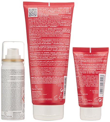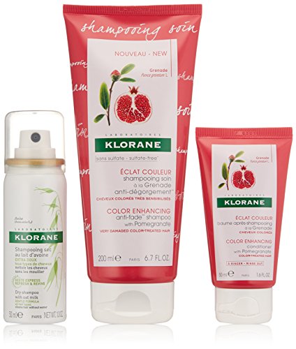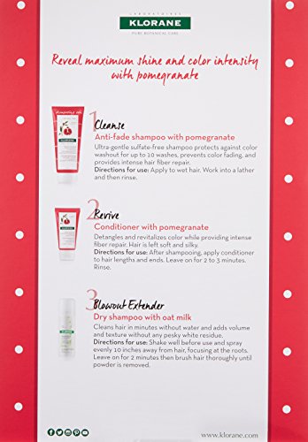 -. Feature : Anti-fade shampoo with pomegranate gently cleanses hair without color wash-out / Conditioner with pomegranate binds color and repairs the surface of the hair / Dry shampoo with oat milk cleans hair in minutes, adds volume and texture