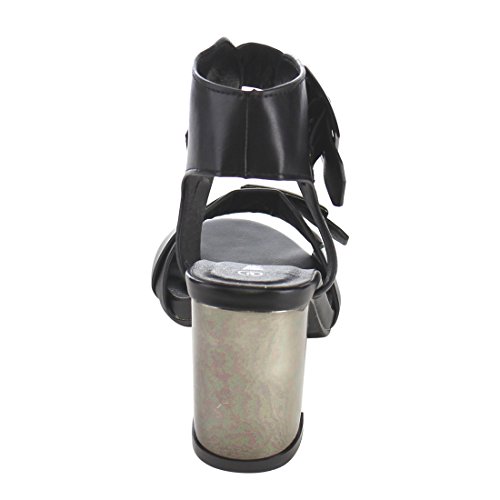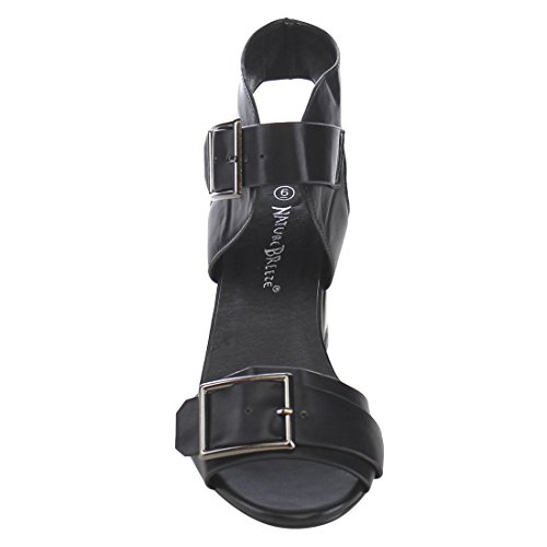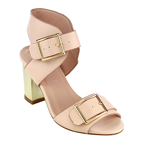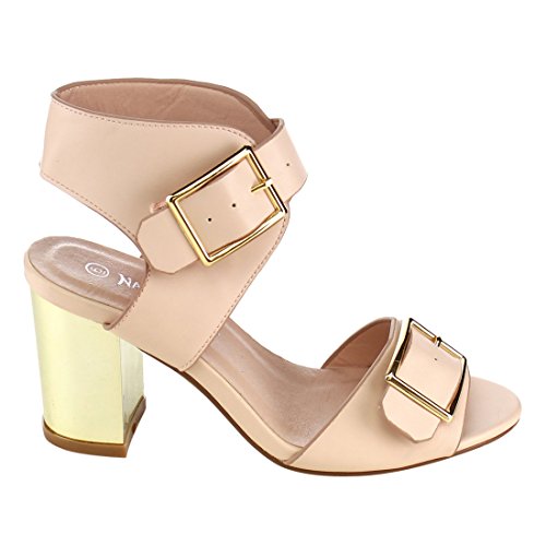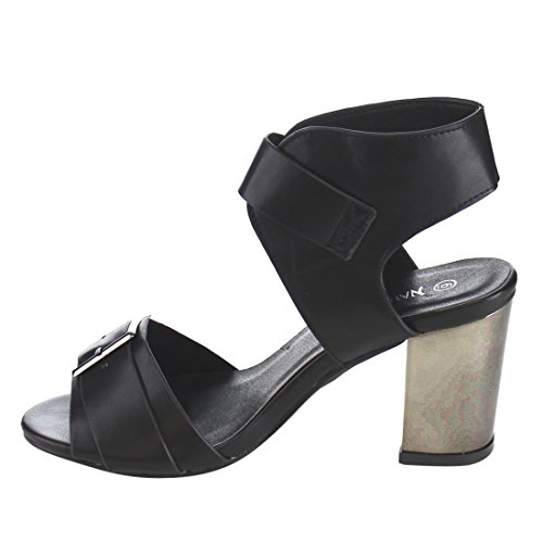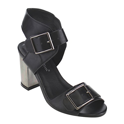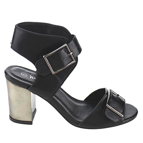 Binding : Apparel Product Description Get ready to show off some fresh polish with these heeled sandals. Designed with faux leather upper, single strap with buckle overlaying, backless silhouette, ankle strap with buckle closure and chunky block heel. 0