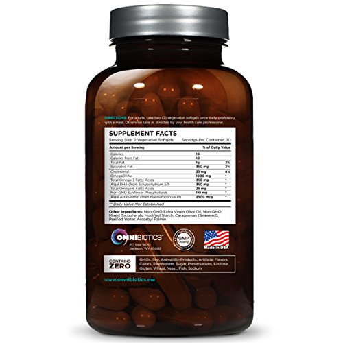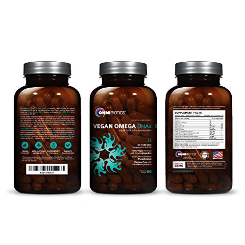 100% VEGAN OMEGA DHA SUPPLEMENT - OmniBiotics® OmegaDHAx is formulated with vegan & vegetarians in mind. Our marine algae-based ingredients are researched for efficacy; MD-Certified™ formula includes Sunflower Oil + Algal Astaxanthin for superior absorption and maximum bioavailability; each 2 Veggie Caps serving size contains 350mg Algal DHA, 350mg Omega-3 + 20mg Omega-6 Essential Fatty Acids to form a UNIQUE plant-based Omega supplement encapsulated in non-animal seaweed based softgels