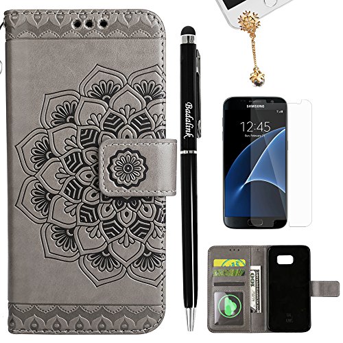 -. Title : S7 Case, Flip Book Style Embossed Wallet Case Premium PU Leather Detachable Cover Soft TPU Interior Magnetic Shell with Dust Plug & Stylus & Screen Protector for Samsung Galaxy S7 by Badalink