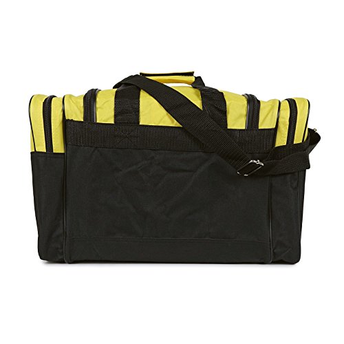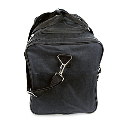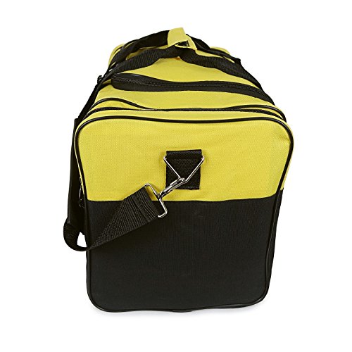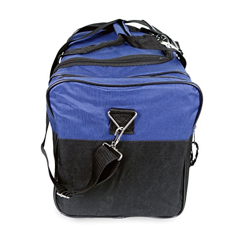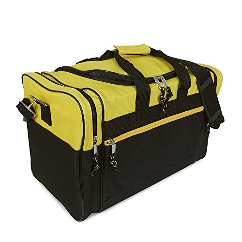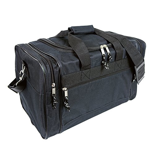 -. Feature : Material: 600D Polyester / Size: 17" x 10" x 9" / Features: Large zippered main compartment, two end zippered pockets, front zippered pocket, handles, and removable shoulder strap. / Intended Use: Gym, Sports, Travel, Carry-on, Camping, Hiking, Indoor/Outdoor Activities and etc... / If you're not satisfied Please contact us, 30-Days for 100% Money Back Guarantee