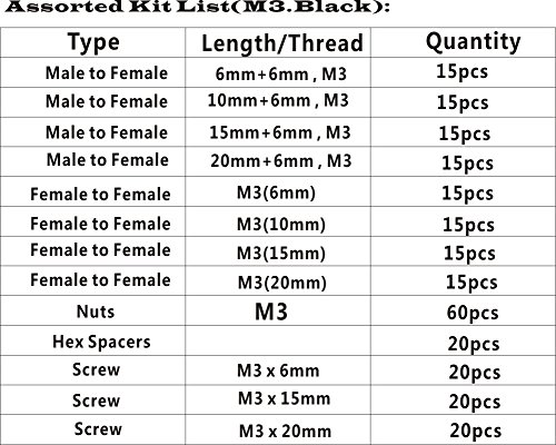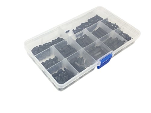 HVAZI 260pcs M3 Male Female Nylon Hex Spacer Standoff Screw Nut Assorted Kit (Black)