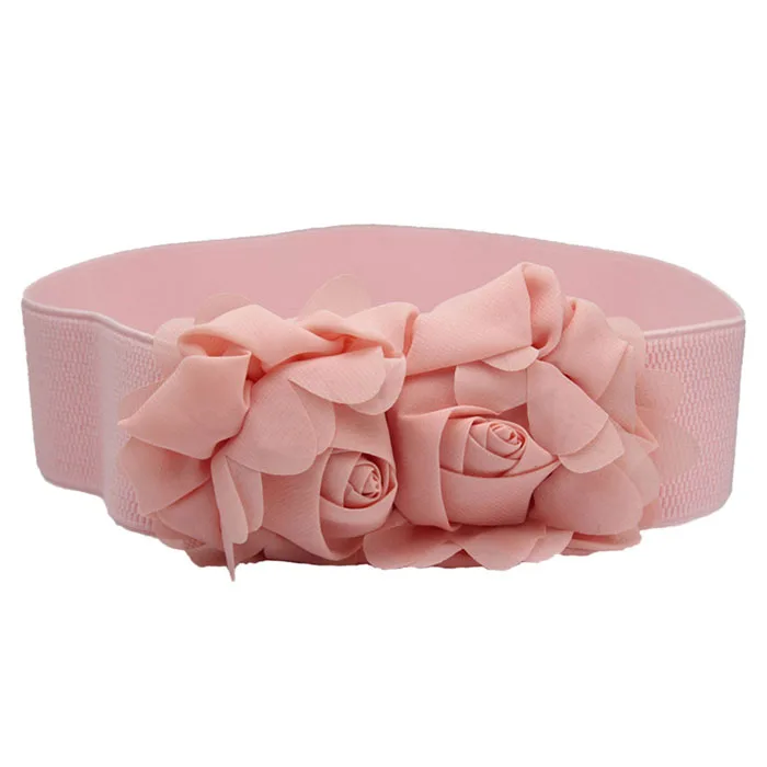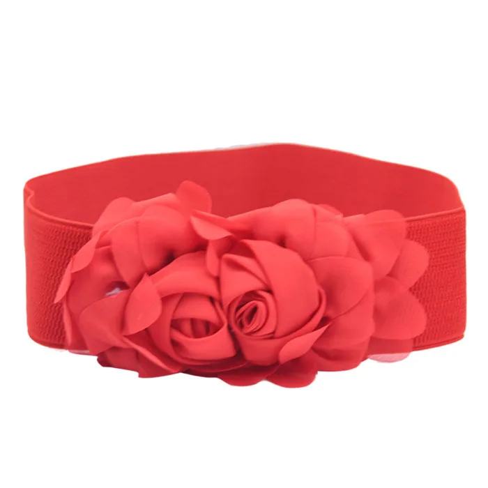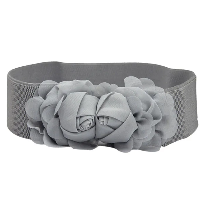Amazing Fashion Double Rose Flower Buckle Elastic Waist Belt Lady Waistband