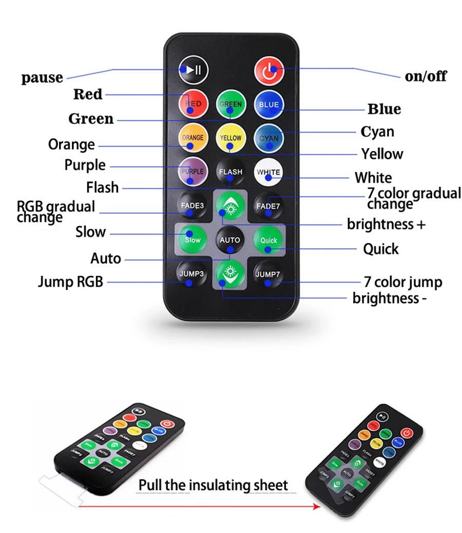 LED Color:RGB white yellow green blue red pink Warm white purple