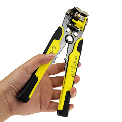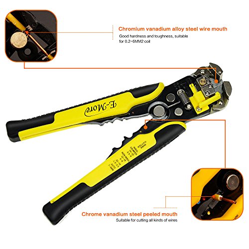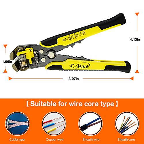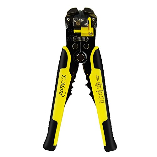 E-More Self-Adjusting Wire Stripper, 8-Inch Automatic Electric Cable Wire Stripping Cutter and Crimping Pliers Tool 10-24 AWG (Yellow)