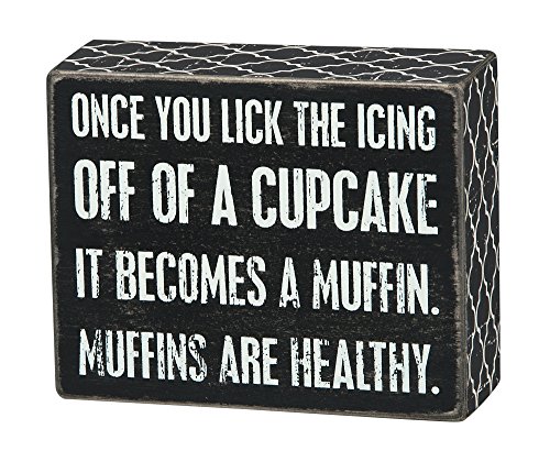 Once You Lick The Icing Off Of A Cupcake It Becomes A Muffin. Muffins Are Healthy - Wood Box Sign for wall hanging, table or desk