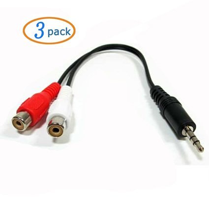 3.5mm Male to 2 RCA Female Splitter Cable (6-Inch) - 3 Pack
