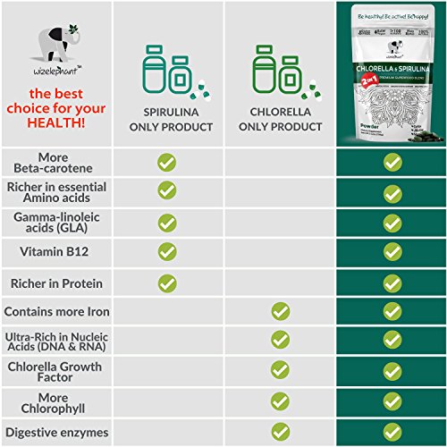 ✱ NATURAL SOURCE OF VITAMINS, MINERALS & AMINO ACIDS - 2 IN 1 Chlorella and Spirulina BLEND contains more than 100 NUTRIENTS needed for your body to be HEALTHY! Ultra-Rich in IRON, Beta-Carotene and PROTEIN with all essential AMINO ACIDS. Unique combination of NUCLEIC ACIDS (DNA&RNA), CHLOROPHYLL and CHLORELLA GROWTH FACTOR makes this BLEND much more nutritious than just Spirulina on its own.
