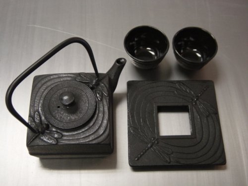 -. Title : JapanBargain S-2089 Square Cast Iron Dragonfly Tea Set, Black