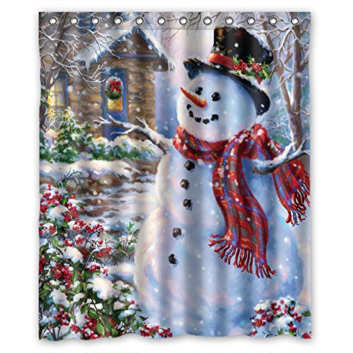 Winter Holiday Merry Christmas Happy Snowman and Cardinals Shower Curtain Waterproof Polyester Fabric Bath Shower Curtain 66"x72" Inches ( Shower Rings Included )