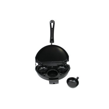 Unique divided construction allows omelets and poached eggs to be cooked in one pan