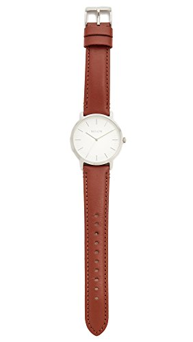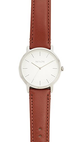 Nixon's Porter watch in the bold combination of a polished stainless steel case, reflective face, and minimalist number markers. Japanese quartz movement and single-crown design. Leather strap.
