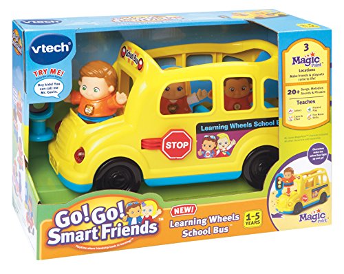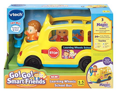 -. Feature : Take a ride on the VTech Go! Go! Smart Friends Learning Wheels School Bus; it's playtime where friendship leads to learning / 3 MagicPoint locations on the toddler toy bring Go! Go! Smart Friends characters to life with fun phrases, motion, lights and more / Features 20+ songs, melodies, sounds and phrases and a stoplight accessory that connects to other Go! Go! Smart Friends playsets; perfect sized for little people with little hands / Mr. Gavin works with other Go! Go! Smart Friends doll accessories and toddler playsets / Learning toy is intended for toddlers ages 1 to 5; 2 AAA batteries included for demo only, use new batteries for regular use