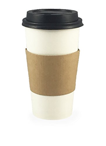 CucinaPrime White Paper Coffee Hot Cups with Black Travel Lids and Sleeves - 20 Ounce, 100 Count