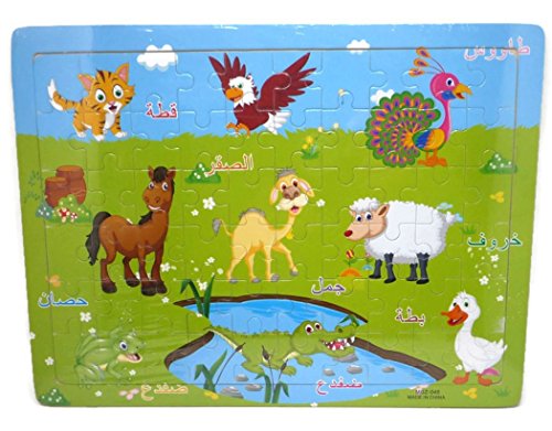 -. Title : Wooden Jigsaw Puzzle MGZ-045 Teach Kids to Learn Arabic Vocabulary Animal Picture Chilren Nursery Toy
