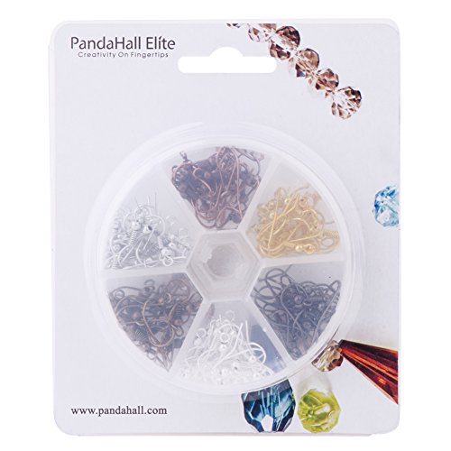 Pandahall 1 Box Mixed Color 120pcs 6 Colors 17mm Brass Earring Hooks Nickel Free for Jewelry Making