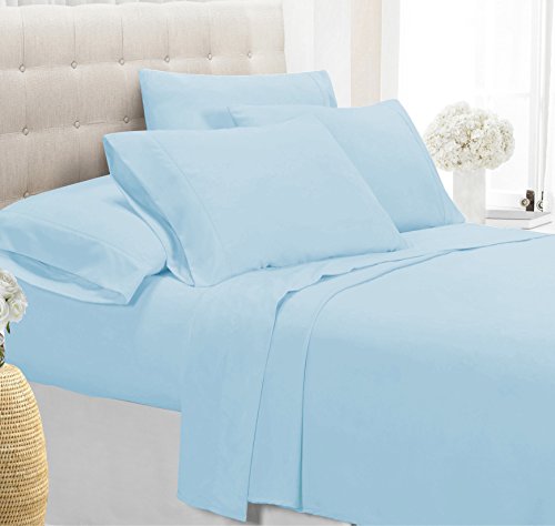 Luxury Bamboo-Blend Sheet Set (4-Piece)-Wrinkle Free With Deep Pockets (King, Sky Blue)