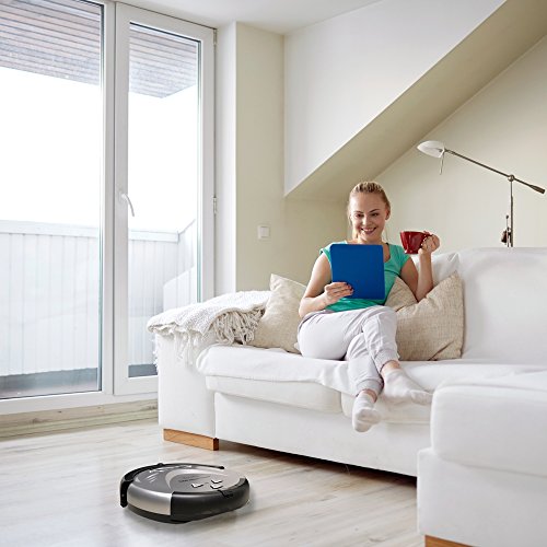 iTouchless Updated Robotic Vacuum Strong Suction, Pet Fur Cleaner-Long Lasting Battery-3 Modes-Cleans Carpets, Hardwood, Tile, Linoleum Floors-Avoids Stairs and Furniture, Silver