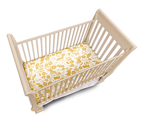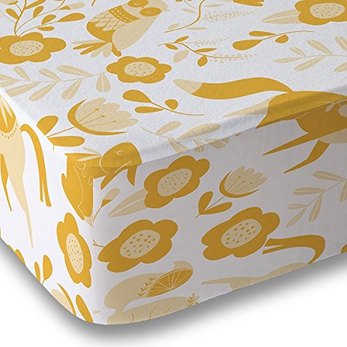 Marigold Yellow Folktale Forest Crib Sheet Baby Bedding, Ultra Soft White and Yellow Woodland Creatures