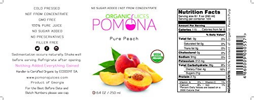 Pomona Organic Pure Peach Juice, 8.4 Ounce (Pack of 12) Organic Peach Juice by Pomona