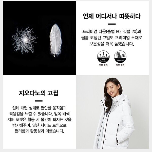 고 퀄리티 필파워와 최상의 보온성을 갖춘 스포츠 무드의 롱 다운 입니다
