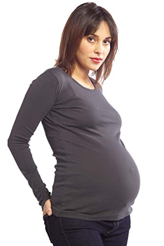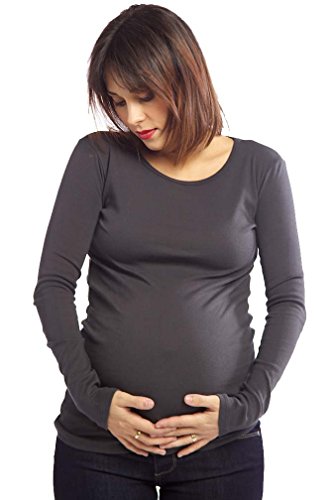 The Skyler maternity top will soon be your favorite long sleeved maternity top. With its super soft fabric and extra length you will have your bump stay nice and warm but still looking great. A perfect basic top to either wear with just jeans or as a layering piece. Available in Plum, Stone (light grey), Charcoal, and Night (Black). 100% Ribbed Cotton. Machine wash cold.Feature