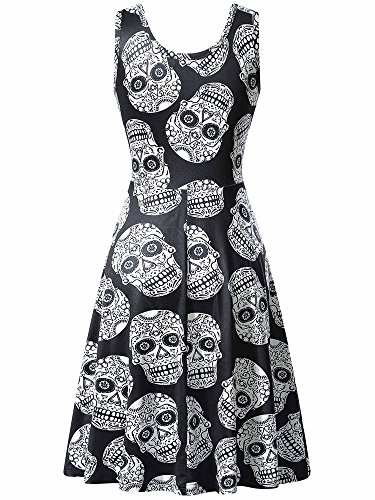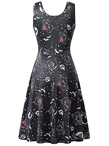 Ladies Sundress,HUHOT Sleeveless Fit and Flare Casual A Line Halloween Party Midi Print Dress X-Large 17039-5