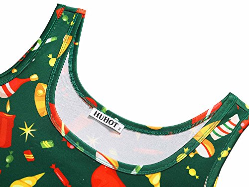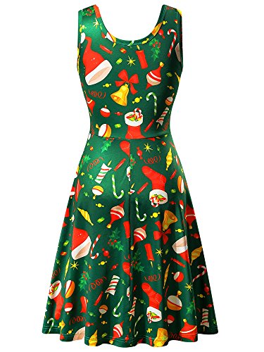 Green Christmas Dresses,HUHOT Women Xmas Mistletoe Bell Print A Line Flare Tank Dress(Medium, Green Bell-2)