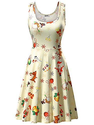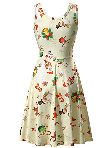 Christmas Cute Dresses,HUHOT Women Gift Print A Line Flare Tank Dress(Large, Snowman Deer-5)