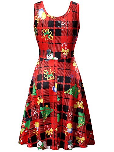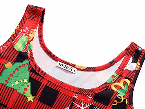 Sexy Christmas Dresses,HUHOT Women Xmas Element A Line Flared Swing Tank Dress (XX-Large, Red Santa Snowman-1)