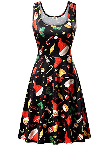 Black Christmas Dress,HUHOT Women Xmas Gift Print A Line Flare Tank Dress(Large, Black Christmas Hat-4)