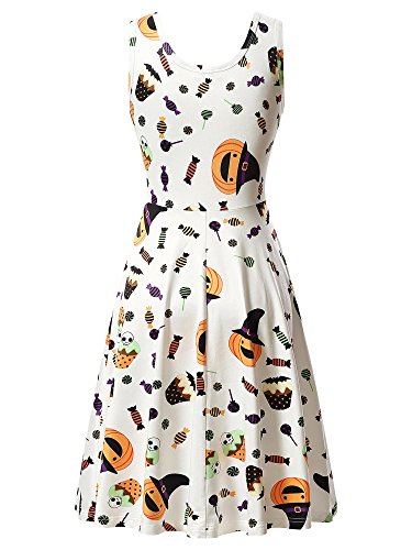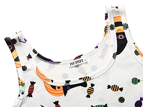 Halloween Dress,HUHOT Sleeveless Casual A Line White Candy Witch Pumpkin Party Midi Tank Dress