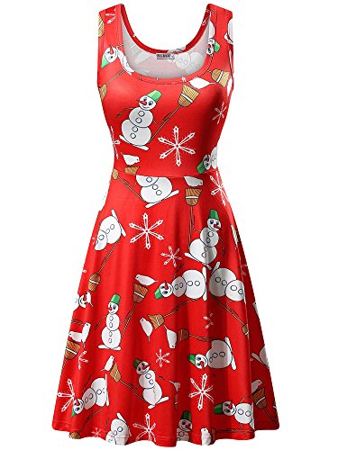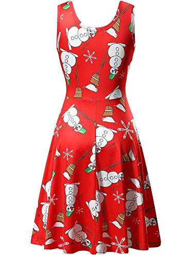 Red and White Dress,HUHOT Women Christmas Xmas Print Snowman Tank Dress Top(Large, Red Snowman-3)