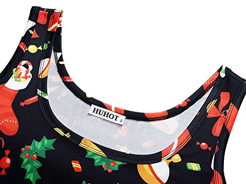 Black Christmas Dresses,HUHOT Women Xmas Gift Santa Claus Print Tank Dress(Small, Happy Santa-6)