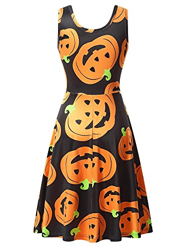 Halloween Dress Shirt,HUHOT Sleeveless Casual A Line Pumpkin Printed Party Midi Tank Dress Medium 17039-5