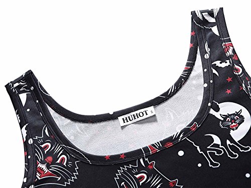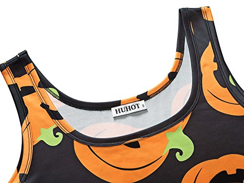 Halloween Party Dress,HUHOT Sleeveless Casual A Line Junior Print Midi Tank Dress Black Pumpkin X-Large 17039-1
