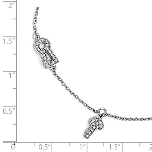 -. Title : Sterling Silver 9in & Synthetic CZ Brilliant Embers Lock/Key Anklet w/1in Ext