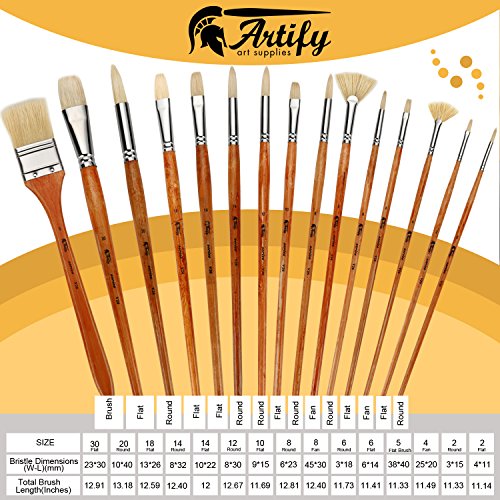 Artify 15 pcs Professional Paint Brush Set Perfect for Oil Painting with a Free Carrying Box