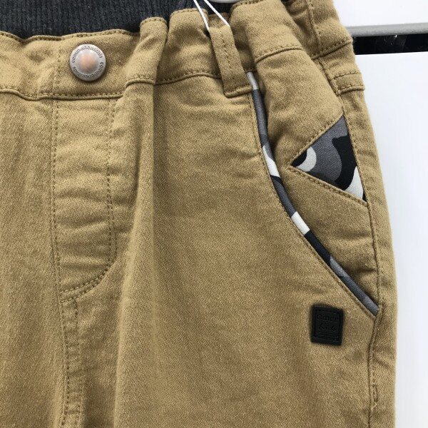 텐션감 좋은 면스판원단과 멋스러운 나염패턴물이 믹싱된 남아팬츠로써 기본셔츠나 니트풀오버에 코디하면 멋스러우면서도 캐쥬얼한 룩 연출