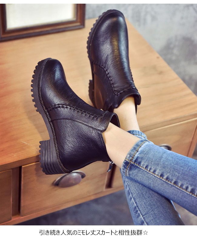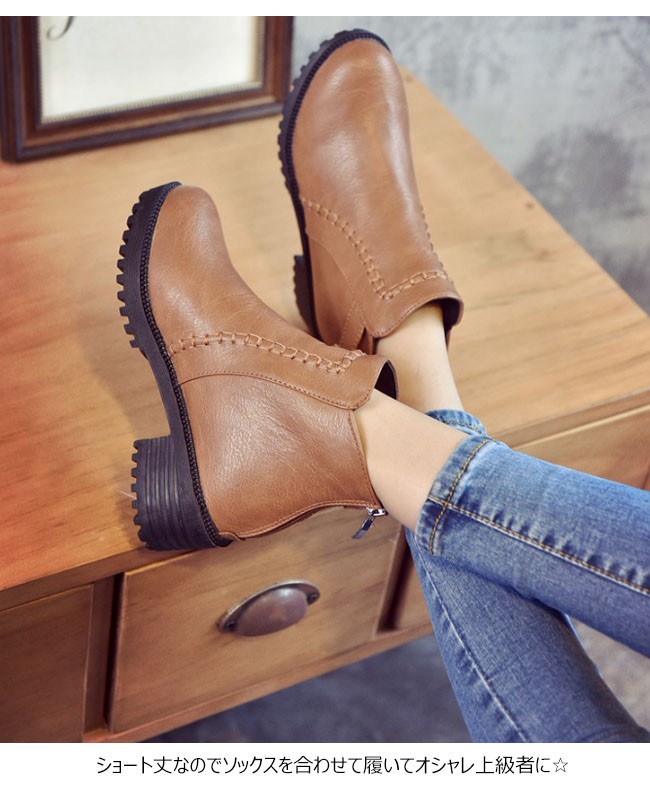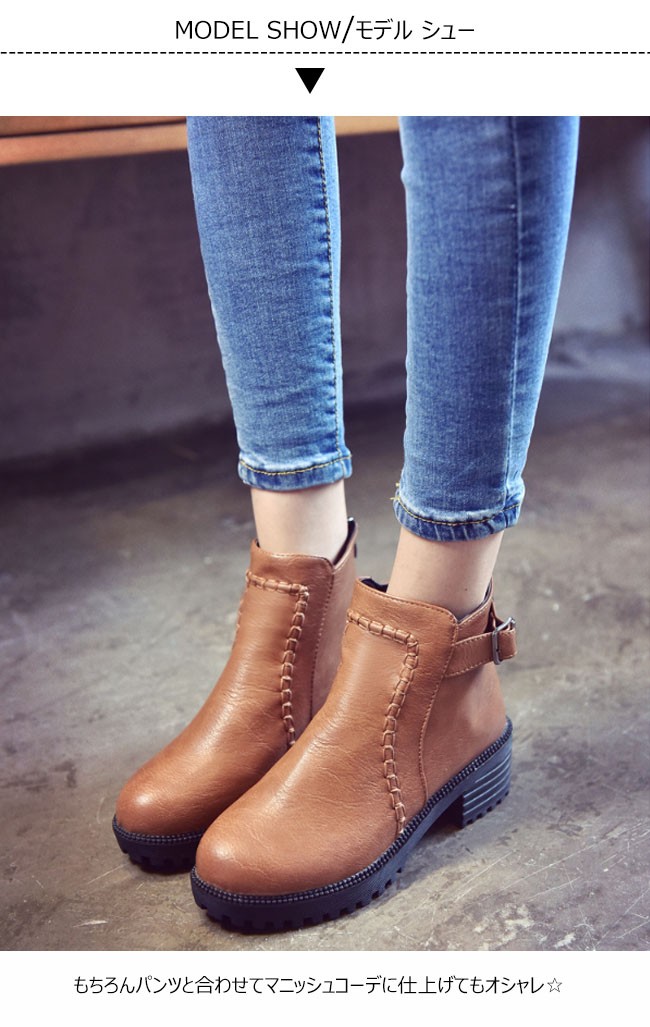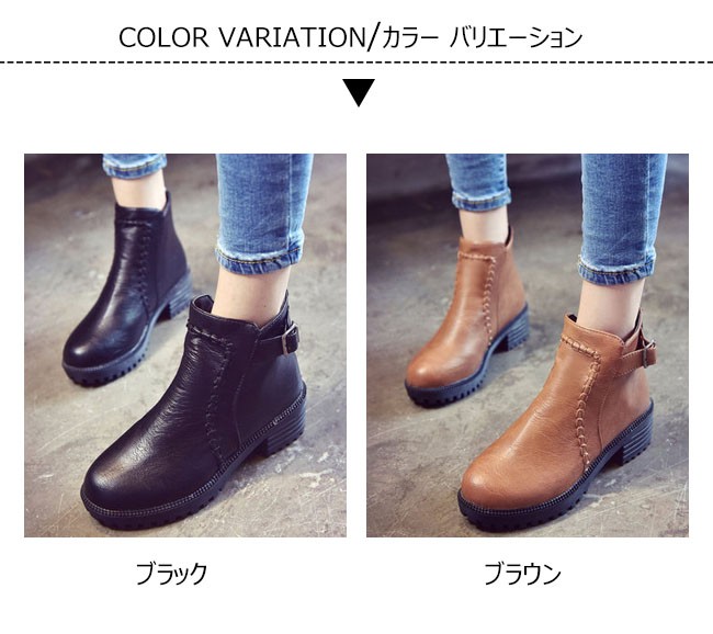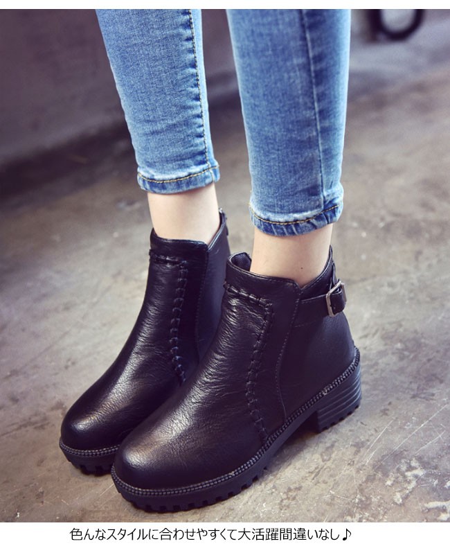 | 商品名 | PUブーツ ショートブーツ レザーブーツ 秋冬ブーツ ステッチ ラウンドトゥブーティ レディース ローヒール ベルト付き ブーティー 太ヒール 2017秋新作 |