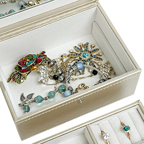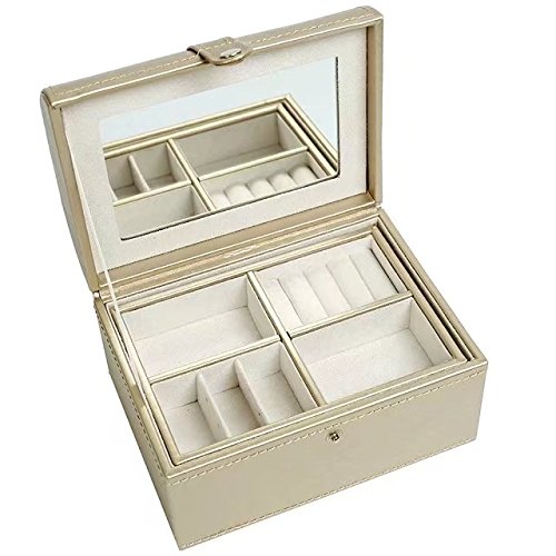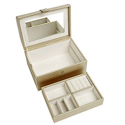 -. Title : 4Queens Handmade Girls travle Jewelry Box Pu Leather with Makeup Mirror Watch Display Organizer Storage Case Water Resistant Lining