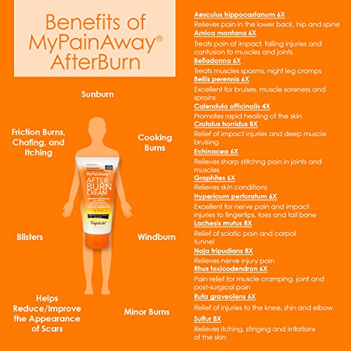 Studio : Topical Biomedics Publisher : Topical Biomedics Binding : Health and Beauty Product Description Top ricin Mypainaway After Burn Cream, 6 Ounce -- 1 each. After-Burn Cream is a soothing combination of natural biomedicines that is the safe, natural alternative to chemical-based lotions and ointments. One application soothes the skin to revitalize, restore, moisturize and provide vibrancy. 3 Percent Sales of. 0