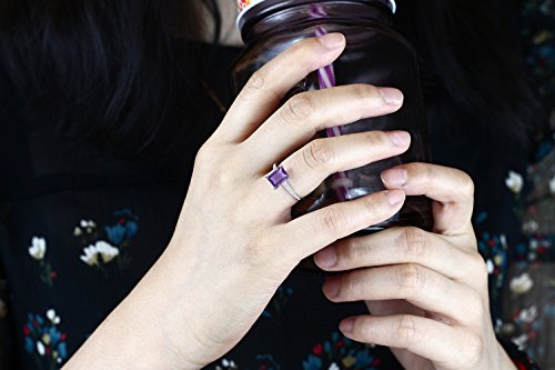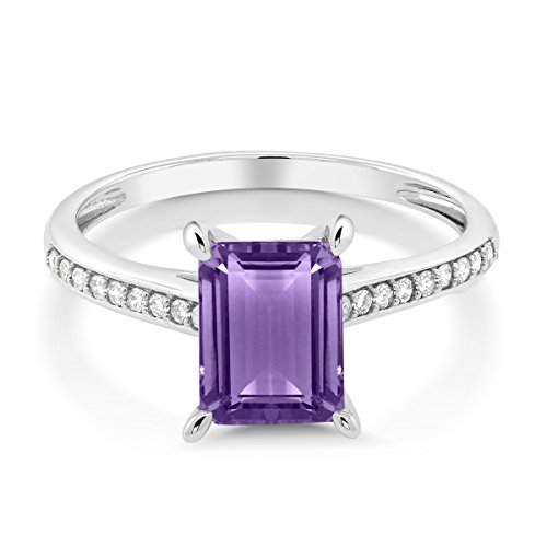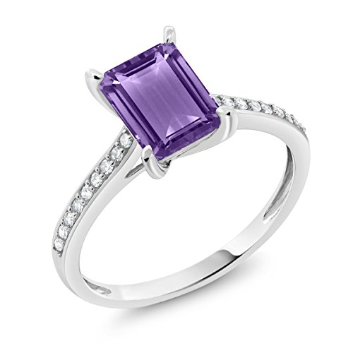 -. Title : 10K White Gold 1.63 Ct Emerald Cut Purple Amethyst White Diamond Engagement Ring (Available in size 5, 6, 7, 8, 9)