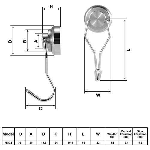 - [50 Pound Heavy Duty] - The vertical attraction can bear up to 50 lbs, which is more powerful than most metal hooks on marketplace. The side attraction can bear up to 12 lbs.