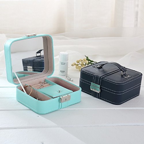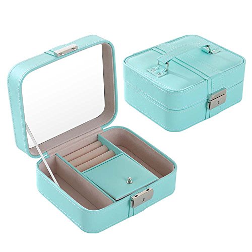 Portable Travel Jewelry Box, Didihou Small Faux Leather Jewelry Organizer Display Makeup Storage Case with Mirror, for Rings Earrings Necklace Bracelet (Pinkish Green)