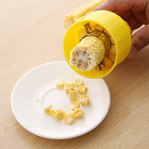 - SAVE YOUR TIME: The stainless steel blades make quick work of corn kernels. Corn Cob Cutter an entire cob of corn in seconds. No repairing, no electricity required, save your time and effort in cooking