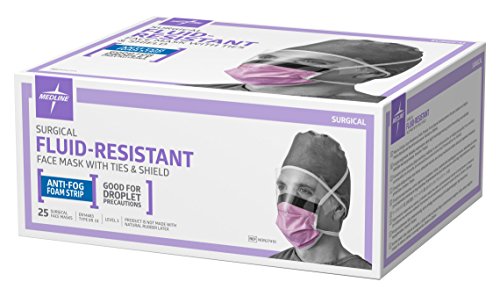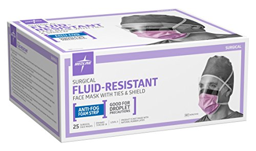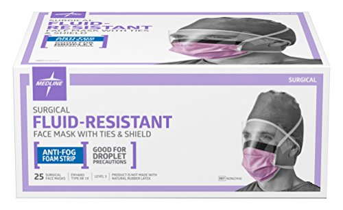Medline NON27410 Surgical Face Masks with Eyeshield, Fluid-Resistant,...